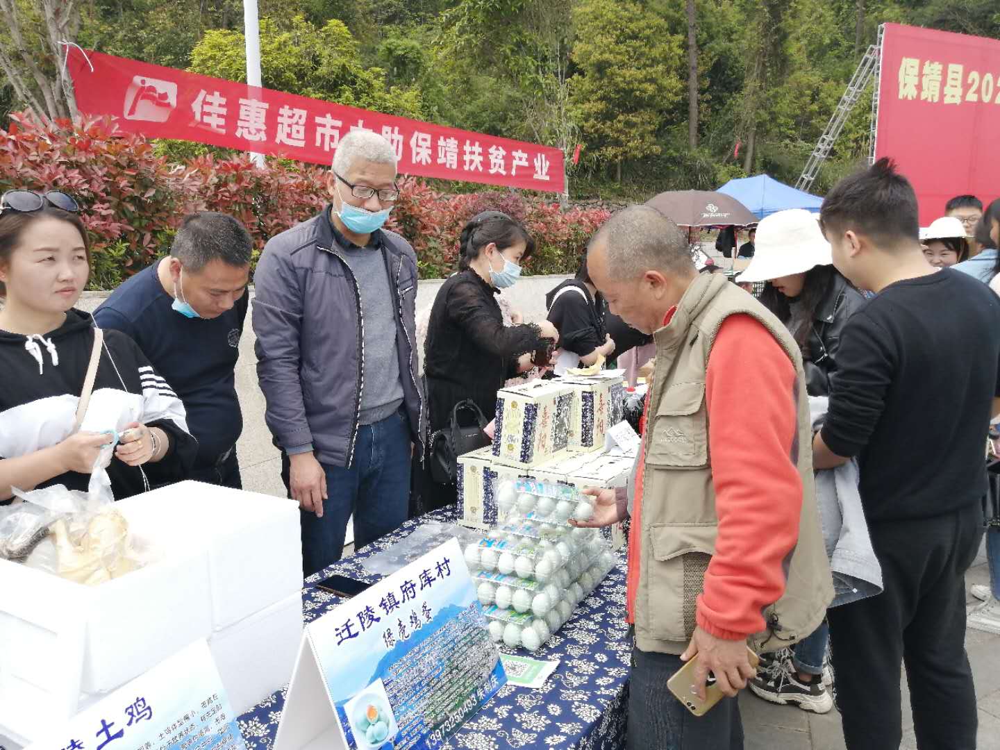 第一步便是養(yǎng)殖江漢綠殼雞,販賣綠殼土雞蛋?!傲窒伦匀环硼B(yǎng),生態(tài)自由采食,原生態(tài)富硒綠殼土雞蛋,1.5元/個,走過的路過的不要錯過啊……”這是朱利慶于“保靖縣2020年消費扶貧愛心認購活動”上的推銷廣告詞。2020年4月9日,駐村工作隊又一次成功地把村集體經(jīng)濟,特色養(yǎng)殖——府庫綠殼土雞蛋推向了當(dāng)?shù)厥袌?,此次展銷會共現(xiàn)場銷售2720個雞蛋,村集體當(dāng)天收入4080元并與多家單位洽談了長期意向銷售。工作隊又購進8000羽綠殼蛋雞苗,以此進一步擴大養(yǎng)殖規(guī)格,帶動老百姓一起增收。